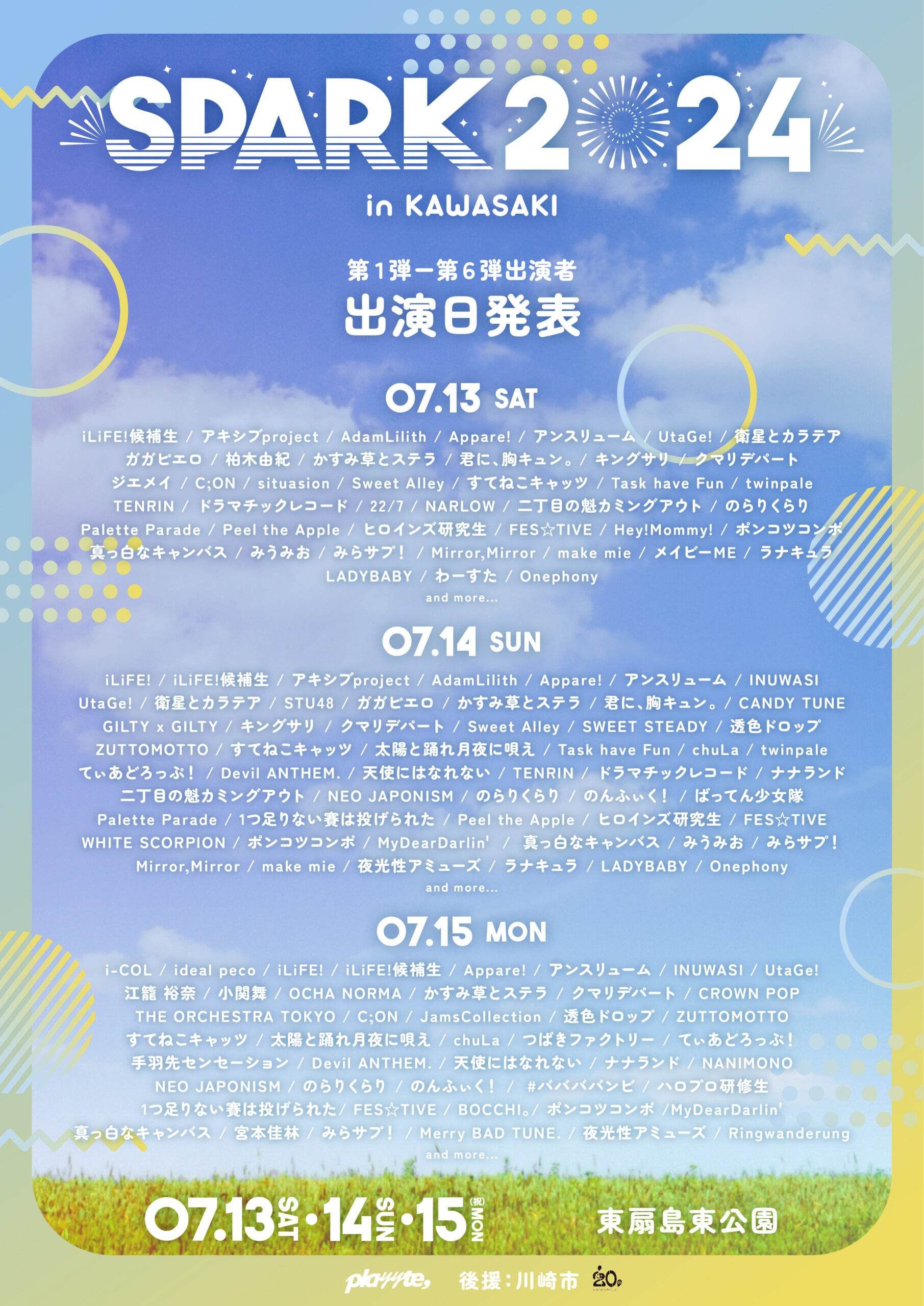 SPARK2024 in KAWASAKI 第1弾~第6弾出演者の出演日が決定!